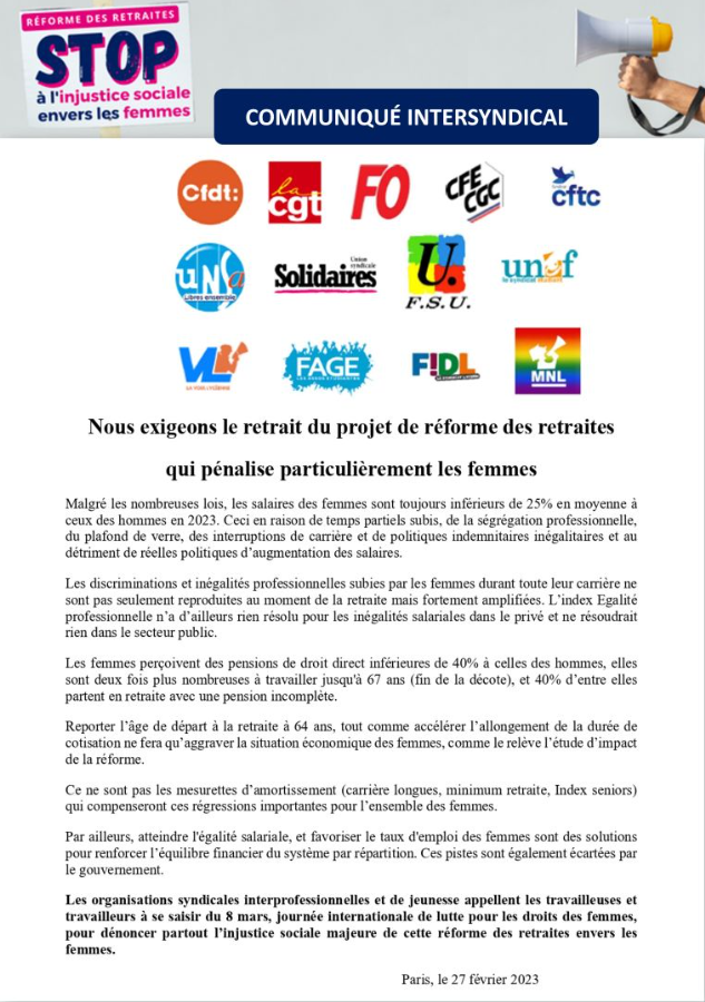source https://www.fieci-cfecgc.org/communique-intersyndical-nous-exigeons-le-retrait-du-projet-de-reforme-des-retraites-qui-penalise-particulierement-les-femmes/#utm_source=rss&utm_medium=rss&utm_campaign=communique-intersyndical-nous-exigeons-le-retrait-du-projet-de-reforme-des-retraites-qui-penalise-particulierement-les-femmes?utm_source=rss&utm_medium=rss&utm_campaign=communique-intersyndical-nous-exigeons-le-retrait-du-projet-de-reforme-des-retraites-qui-penalise-particulierement-les-femmes